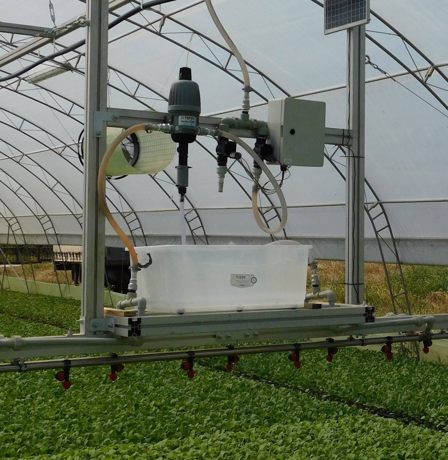 Монтиран непосредствено преди поливната щанга , дозатора дава възможност за подхранване на младите растения или третиране с препарати за растителна защита , нещо което не може да бъде постигнато по друг начин. Предимство е и нуждата от малки работни разтвори. Включването и изключването може да бъде както ръчно така и дистанционно.