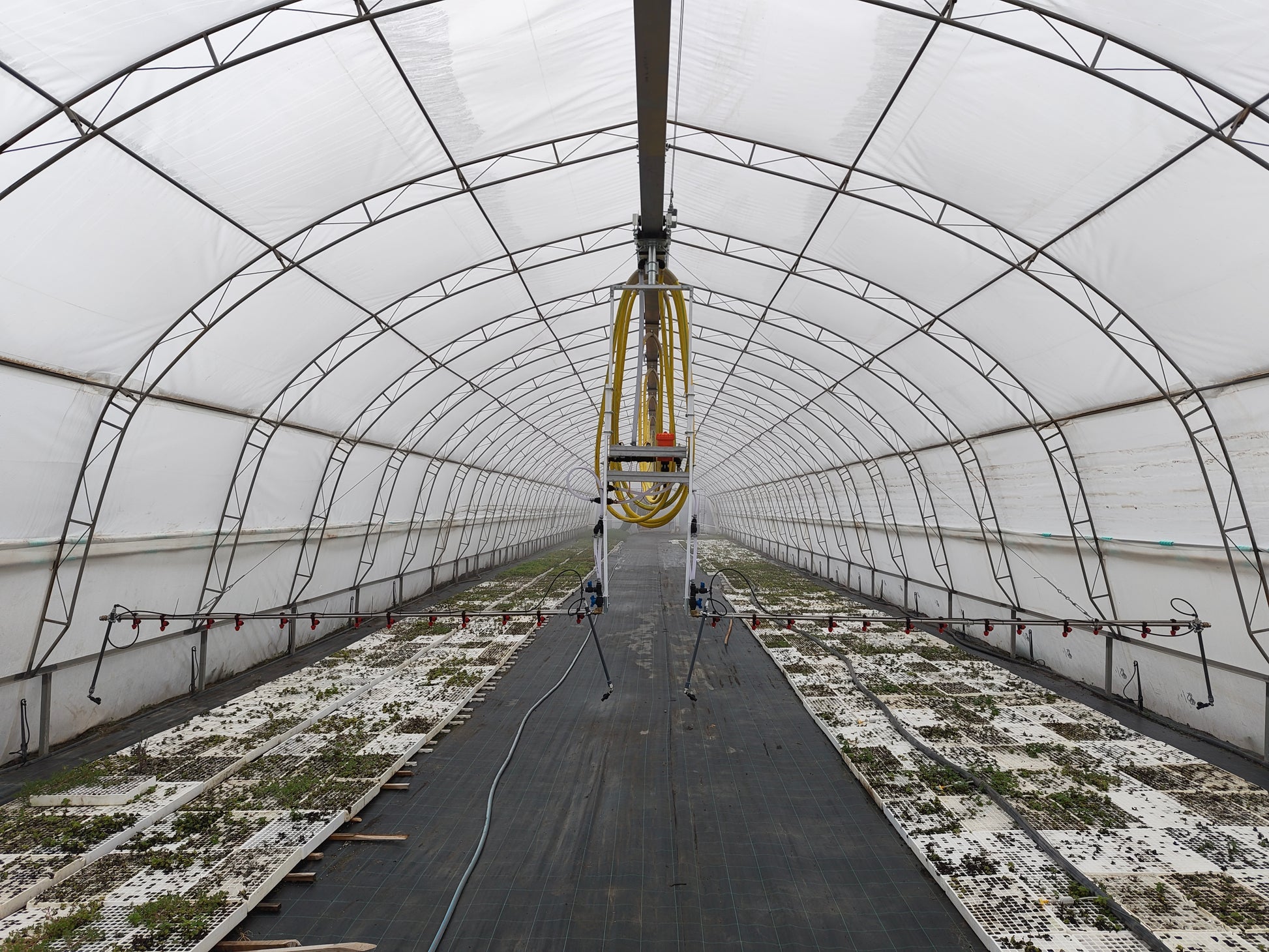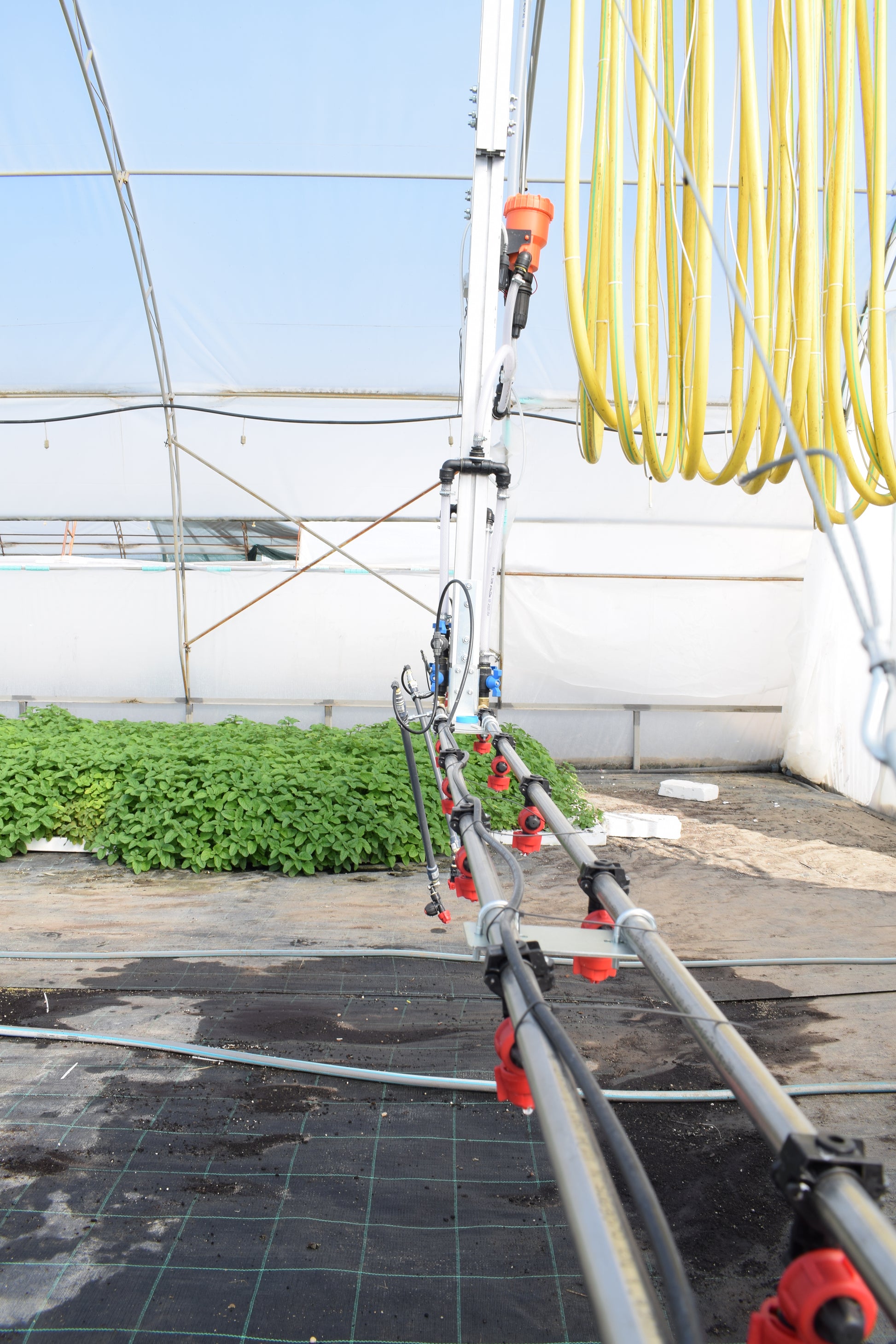 Системата може да се използва с маси или с директно полагане на тавите за семена. Височината на щангата се задава в съответствие с тези условия.