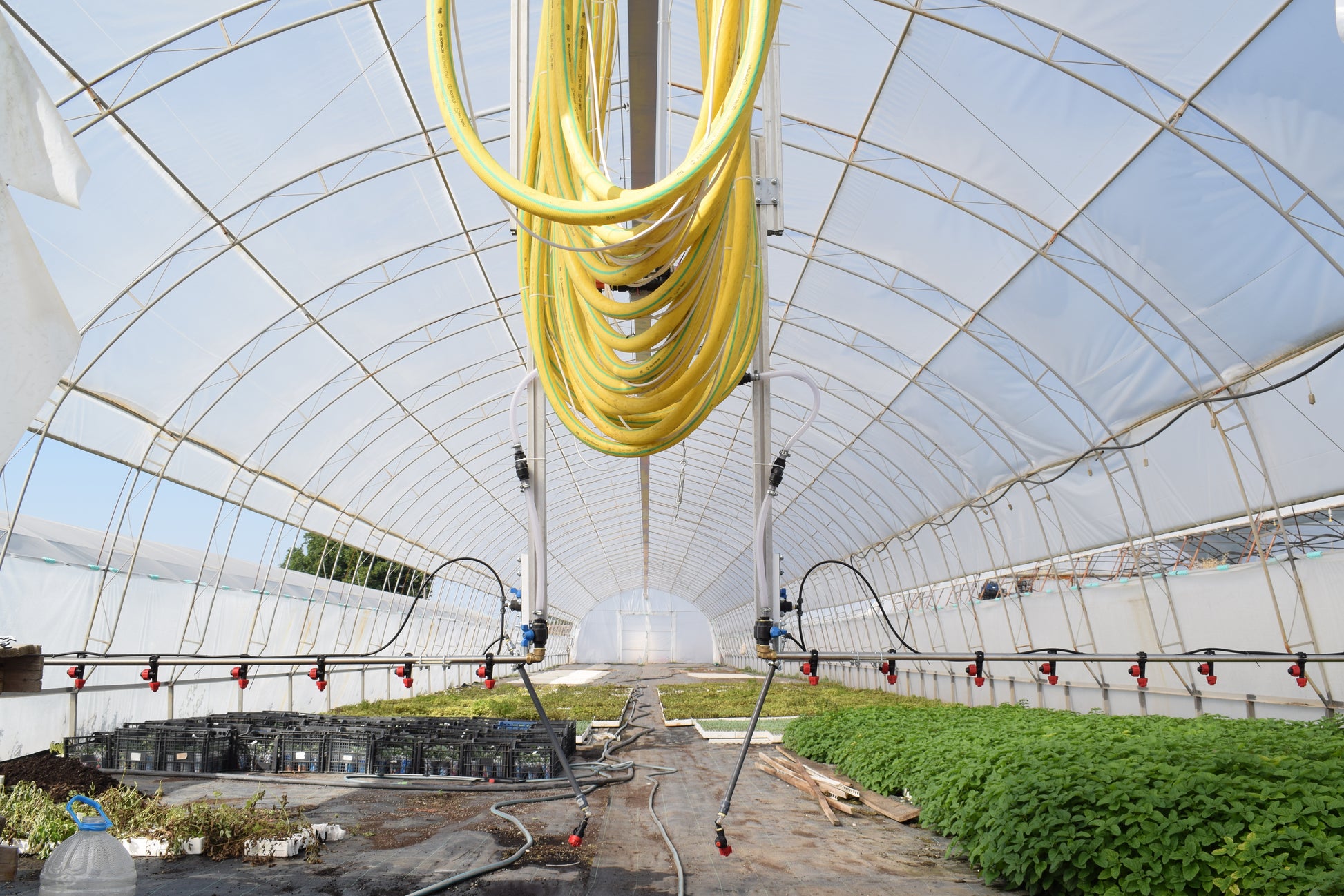 Тръби от неръждаема стомана и двуредови дюзи за перфектна равномерност при всяко преминаване гарантират точната доза вода за всяко растение. Добавянето на допълнителни странични дюзи с прибираща се стойка ще предотврати изсушаването на външните редове.